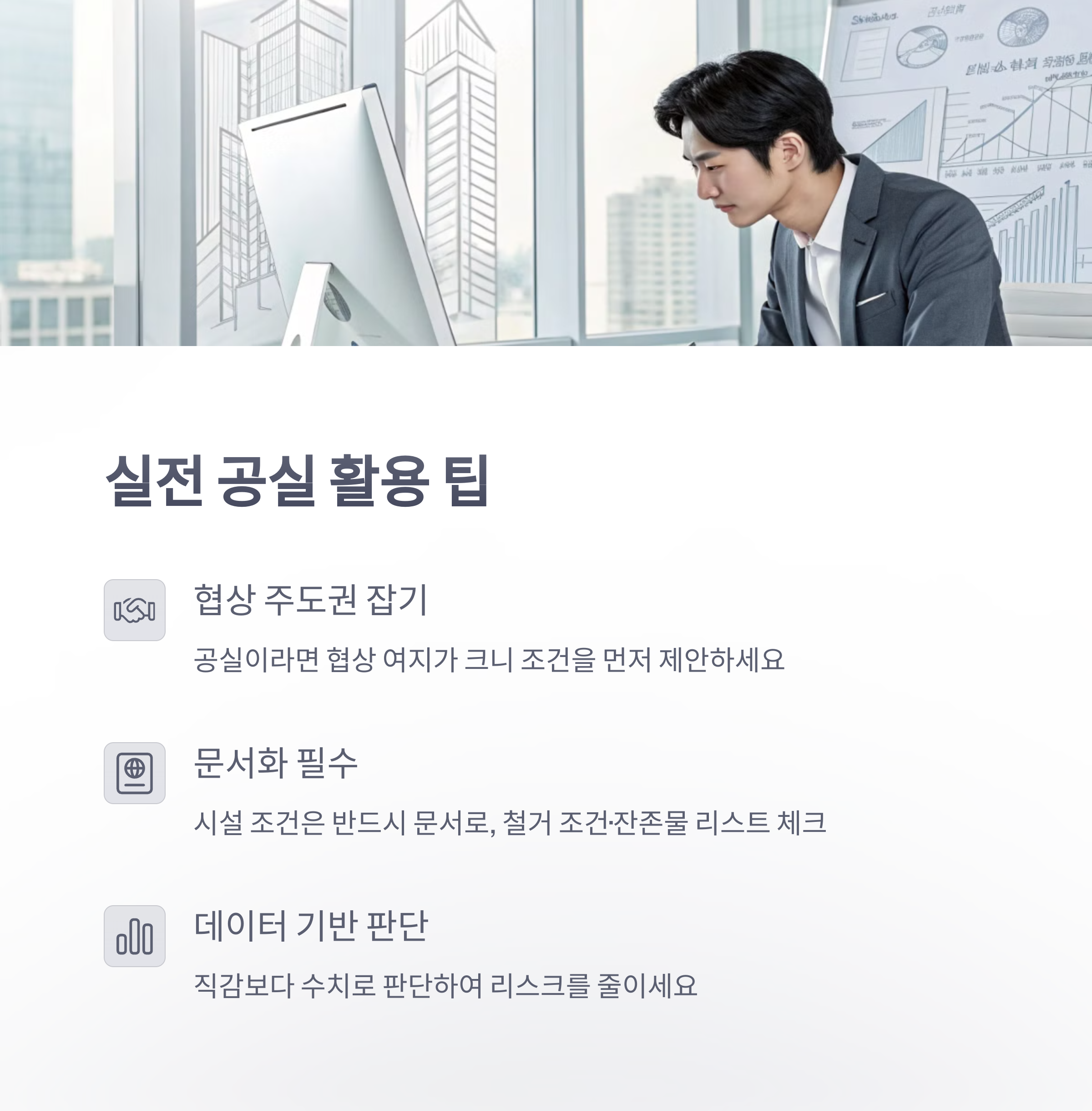 - 시설 조건은 반드시 문서로 → 철거 조건·잔존물 리스트 체크