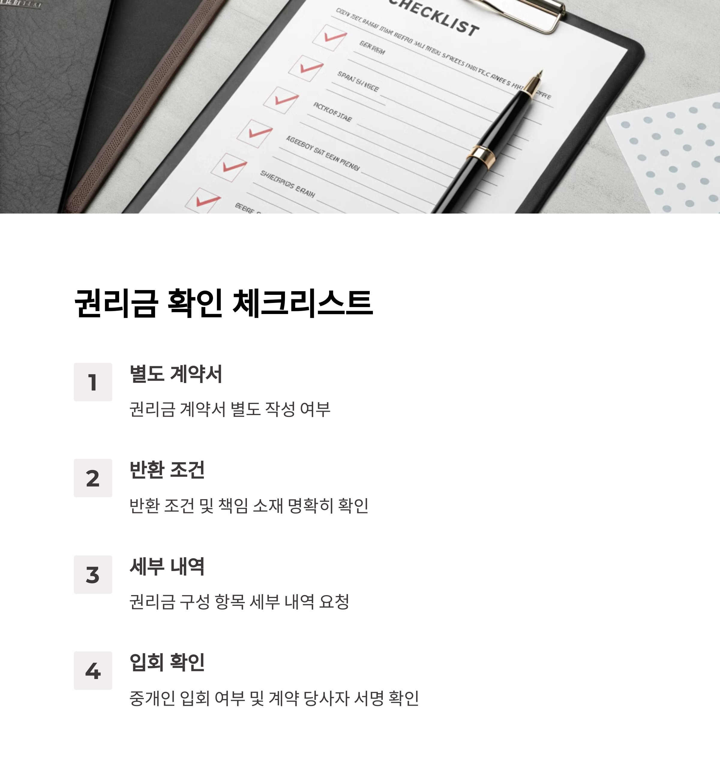 • 중개사의 입회 아래 문서화하는 것이 가장 안전한 방법입니다.