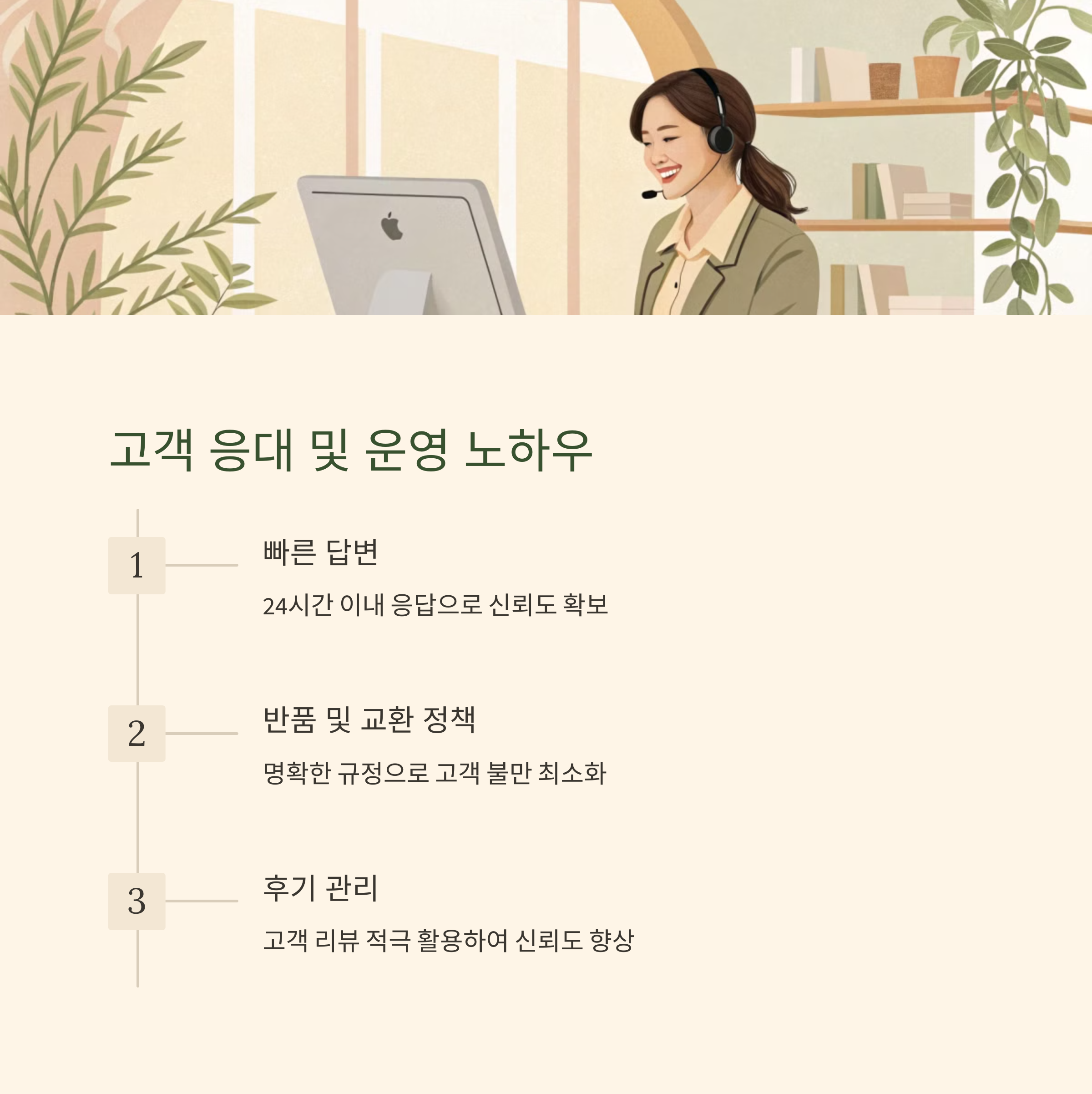 위 전략을 적절히 활용하면 초기 매출을 빠르게 올릴 수 있습니다. 이제 고객 응대 및 운영 노하우를 알아보겠습니다.