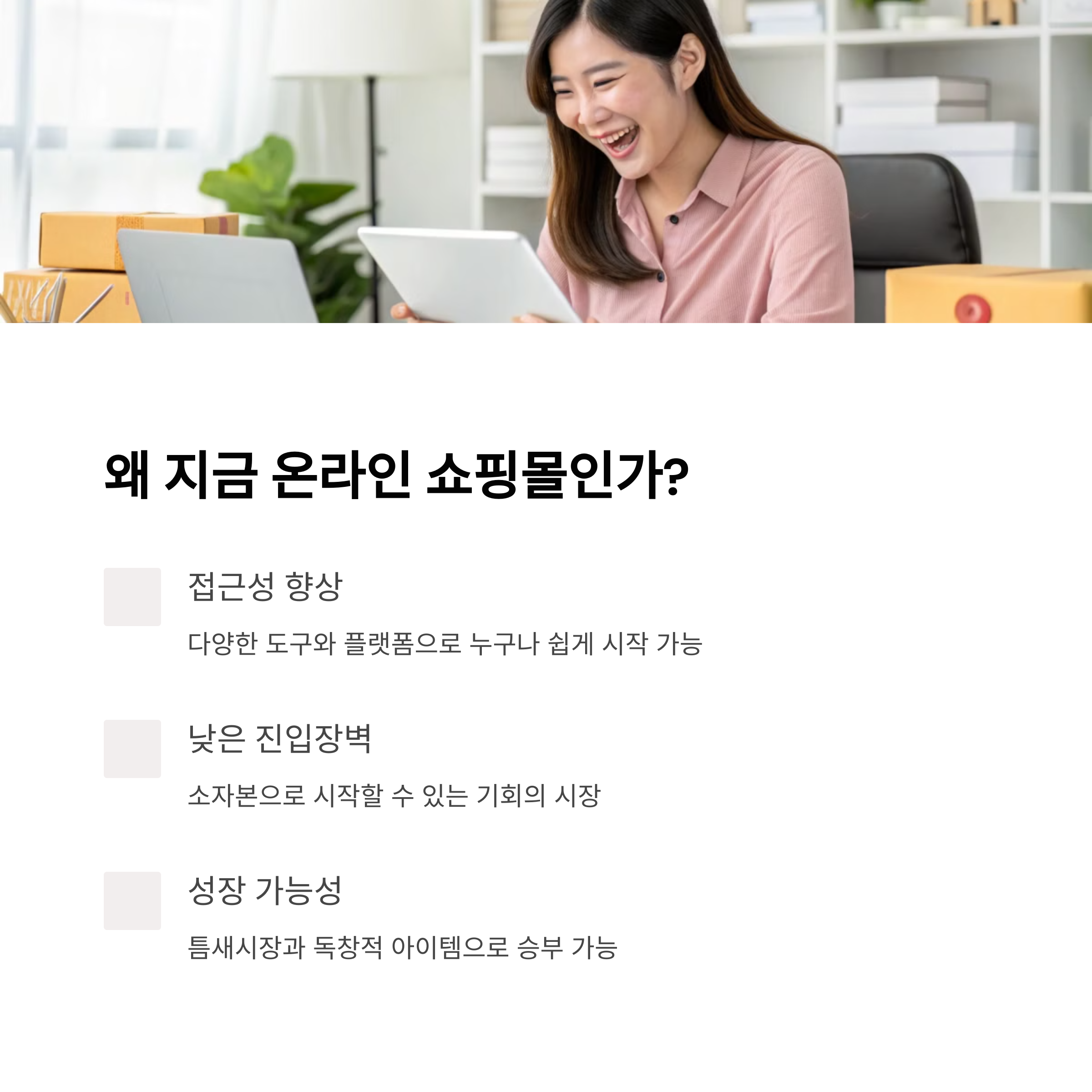 누구나 시작할 수 있지만, 제대로 준비하면 더 빨리 성공할 수 있는 게 바로 온라인 쇼핑몰 창업입니다.