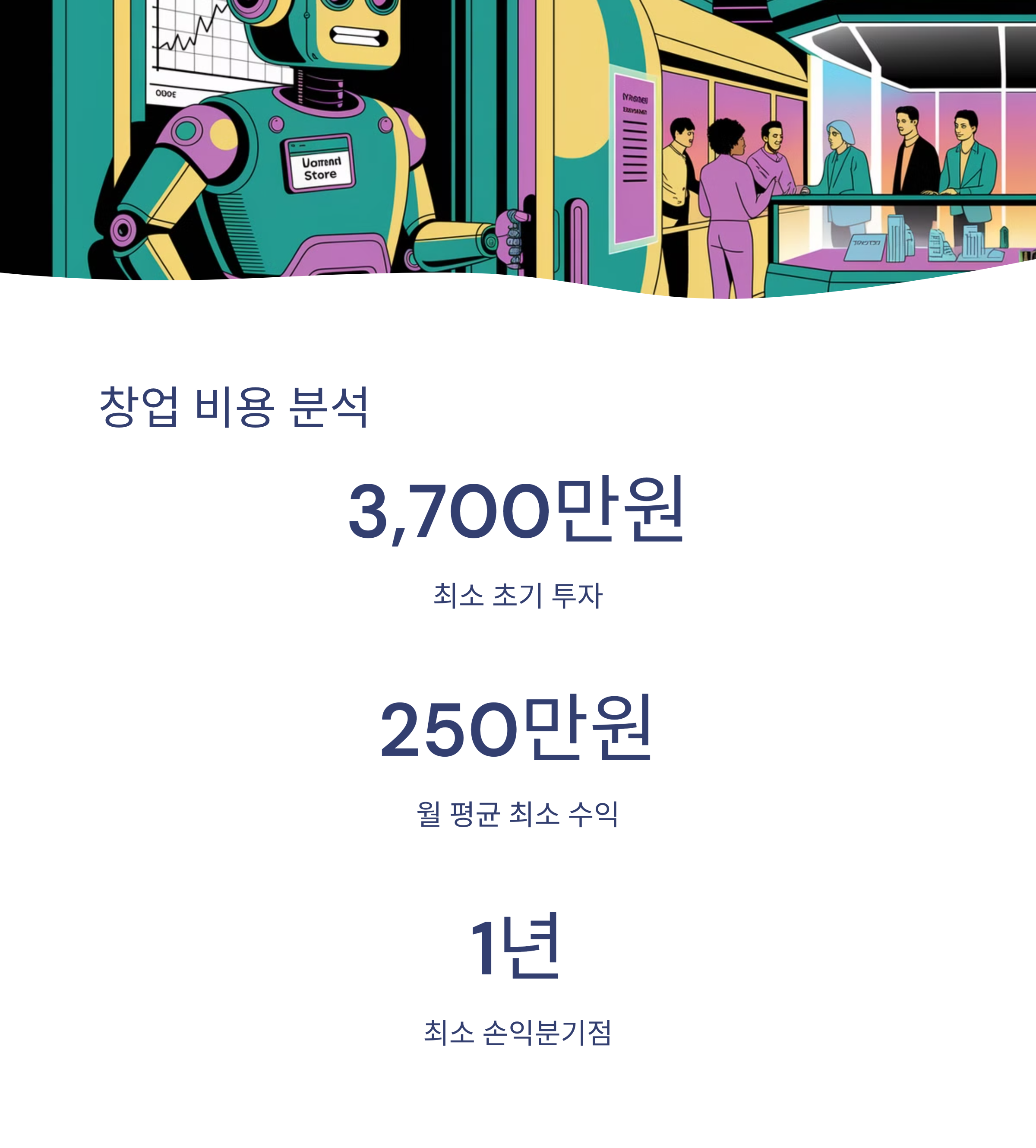 무인매장은 인건비 부담이 적지만, 초기 투자 비용이 만만치 않습니다. 매장 규모, 위치, 장비 등에 따라 창업 비용이 달라질 수 있으므로 철저한 사전 계획이 필요합니다.