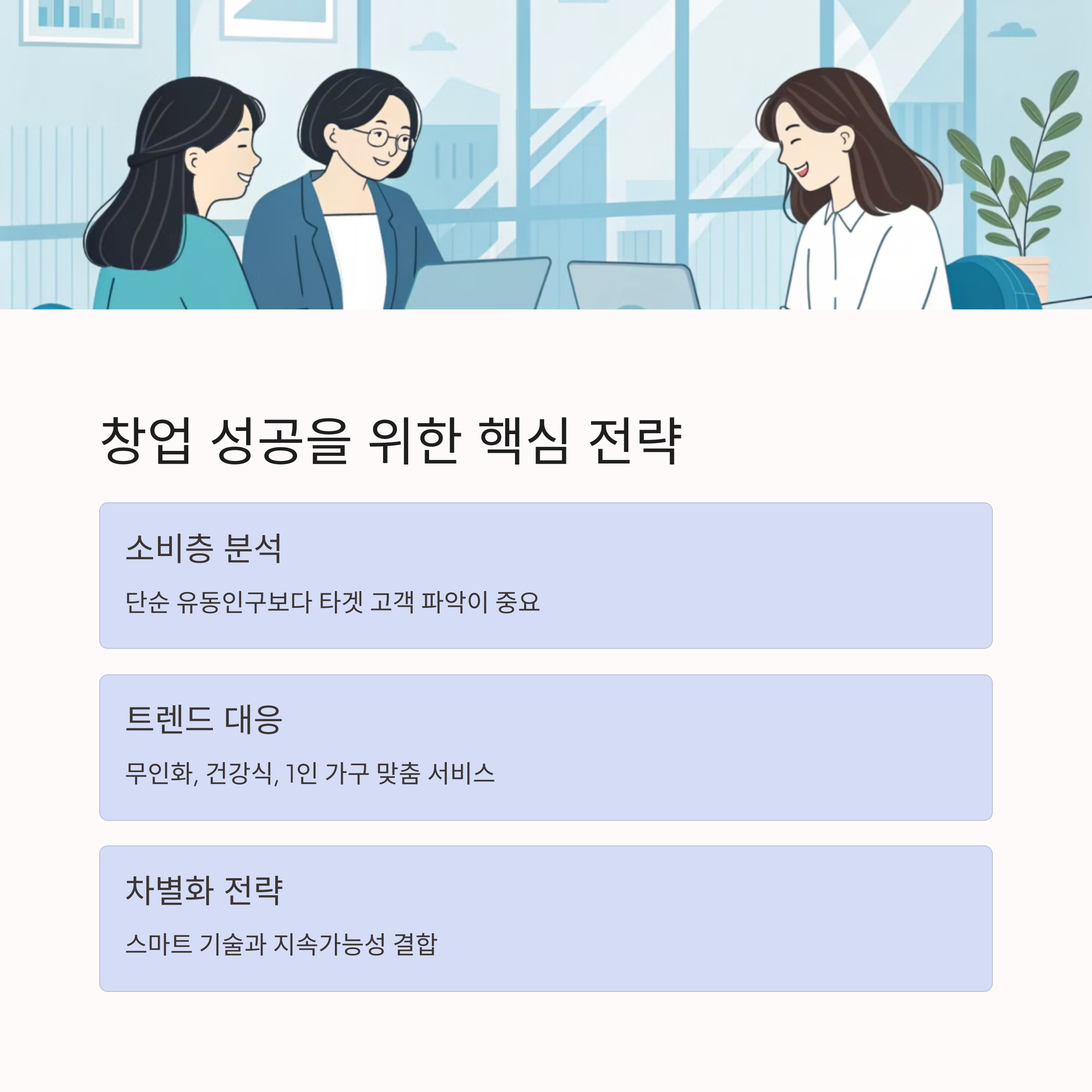 유동인구가 많으면 무조건 장사가 잘 될까요? 사실, 그렇지 않습니다. 중요한 건 단순히 사람이 많냐 적냐가 아니라, 어떤 소비자가, 언제, 어떻게 이동하는지를 파악하는 것이죠. 요즘엔 비대면 소비가 확산되고, 1인 가구가 증가하면서 새로운 창업 트렌드가 나타나고 있습니다. AI 무인 매장, 건강식 전문점, 배달 및 밀키트 사업 등 변화에 발맞춘 창업 기회가 속속 등장하고 있는데요.