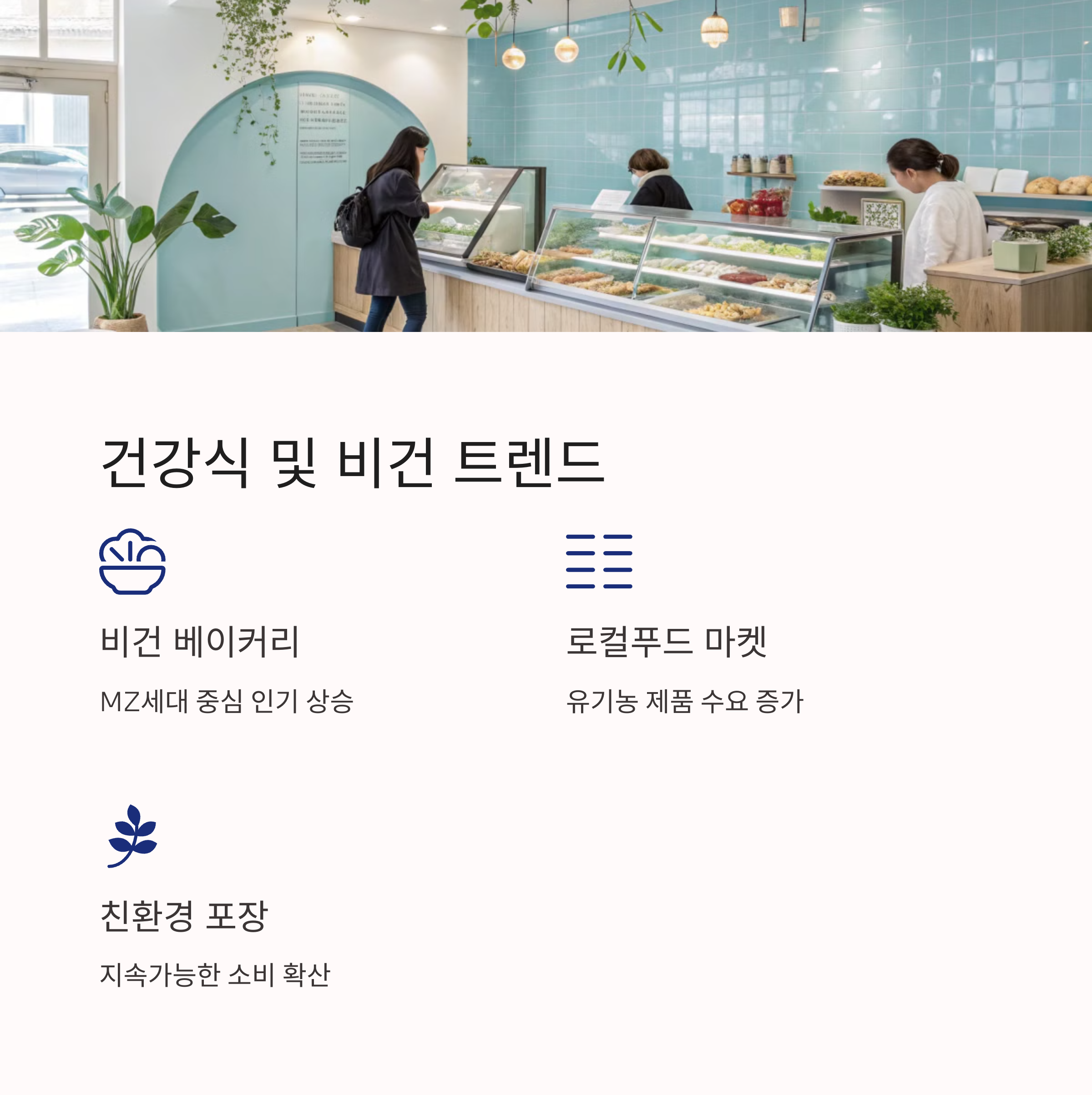 건강과 웰빙을 중시하는 소비자들이 늘어나면서 건강식, 유기농 제품, 비건 전문점 등이 인기를 끌고 있습니다. 특히, MZ세대를 중심으로 비건 카페, 친환경 식품에 대한 관심이 높아지고 있어 관련 창업이 활발하게 이루어지고 있습니다.
