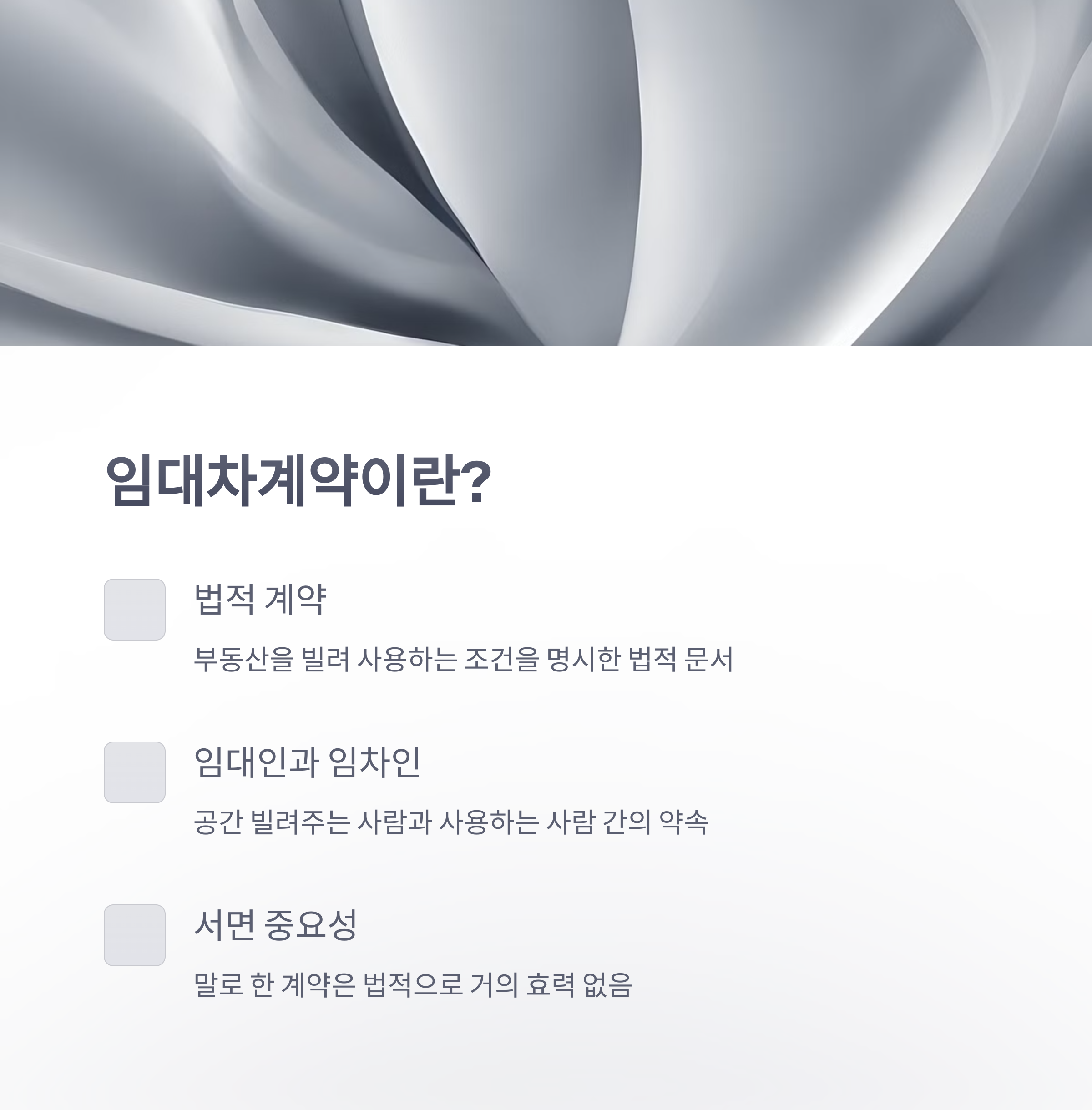 오늘은 그런 실수를 반복하지 않도록, 처음 계약서를 접하는 분들도 쉽게 이해할 수 있는 방식으로 임대차계약의 기본 개념과 체크리스트를 정리해드릴게요.
