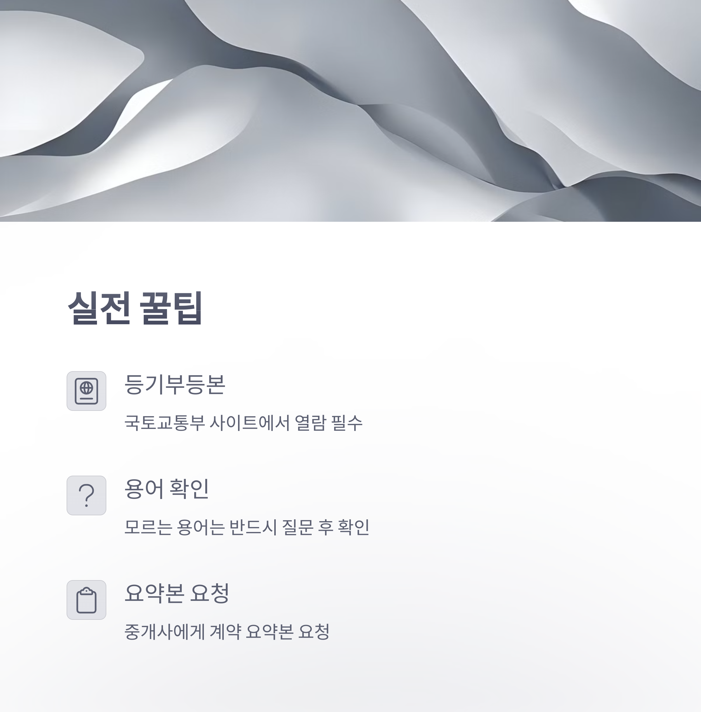 - 계약서에 모르는 용어는 반드시 질문 후 확인