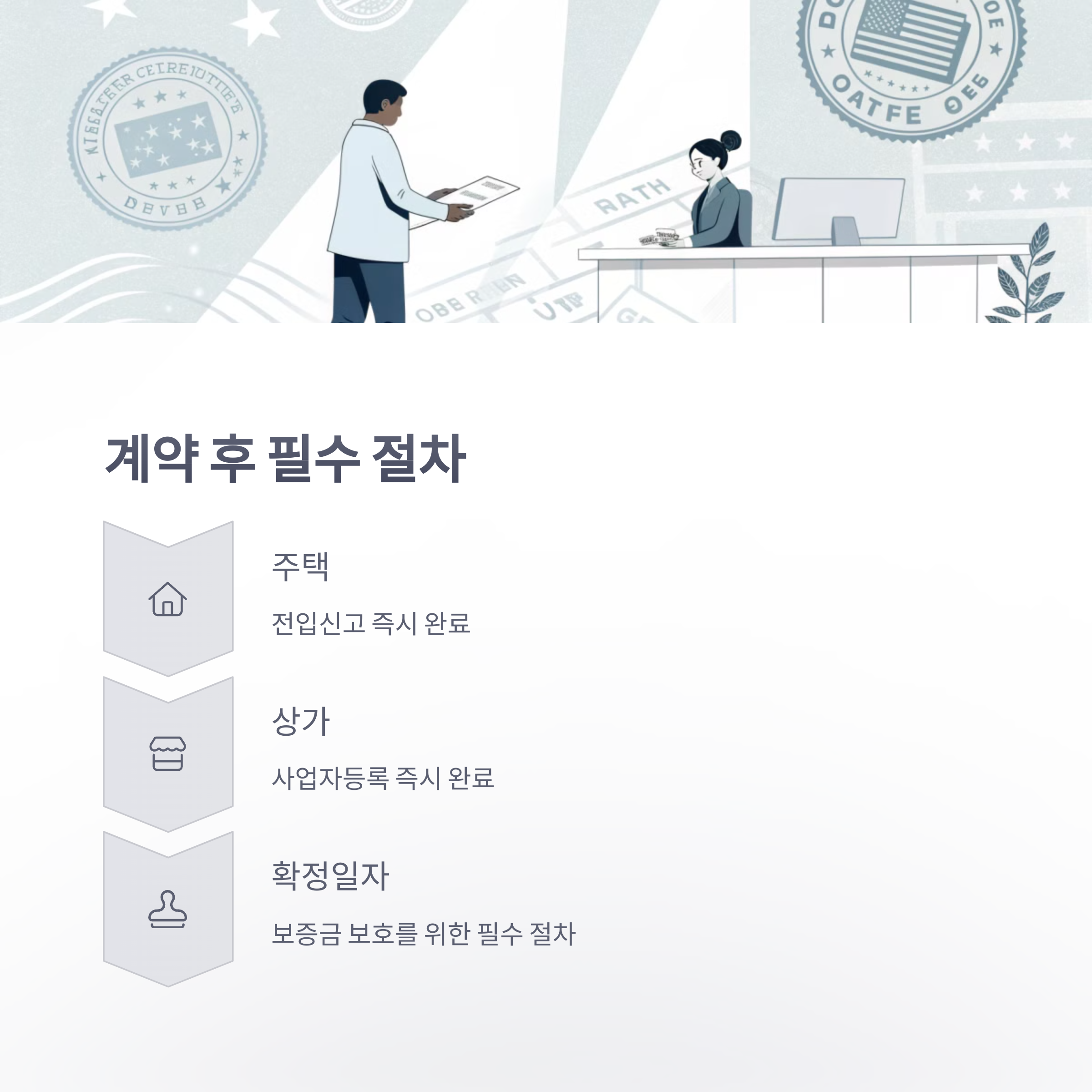 - 계약 후 즉시 전입신고(주택) / 사업자등록(상가) 완료하기