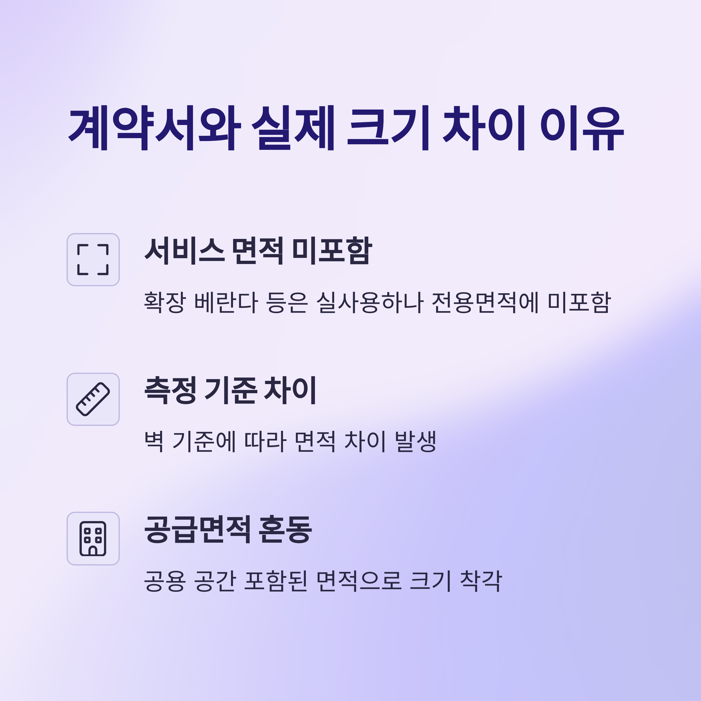 많은 분들이 계약서에 적힌 전용면적 숫자와 실제 느껴지는 공간의 차이에 당황합니다. 그 이유는 크게 세 가지로 나눌 수 있습니다.
