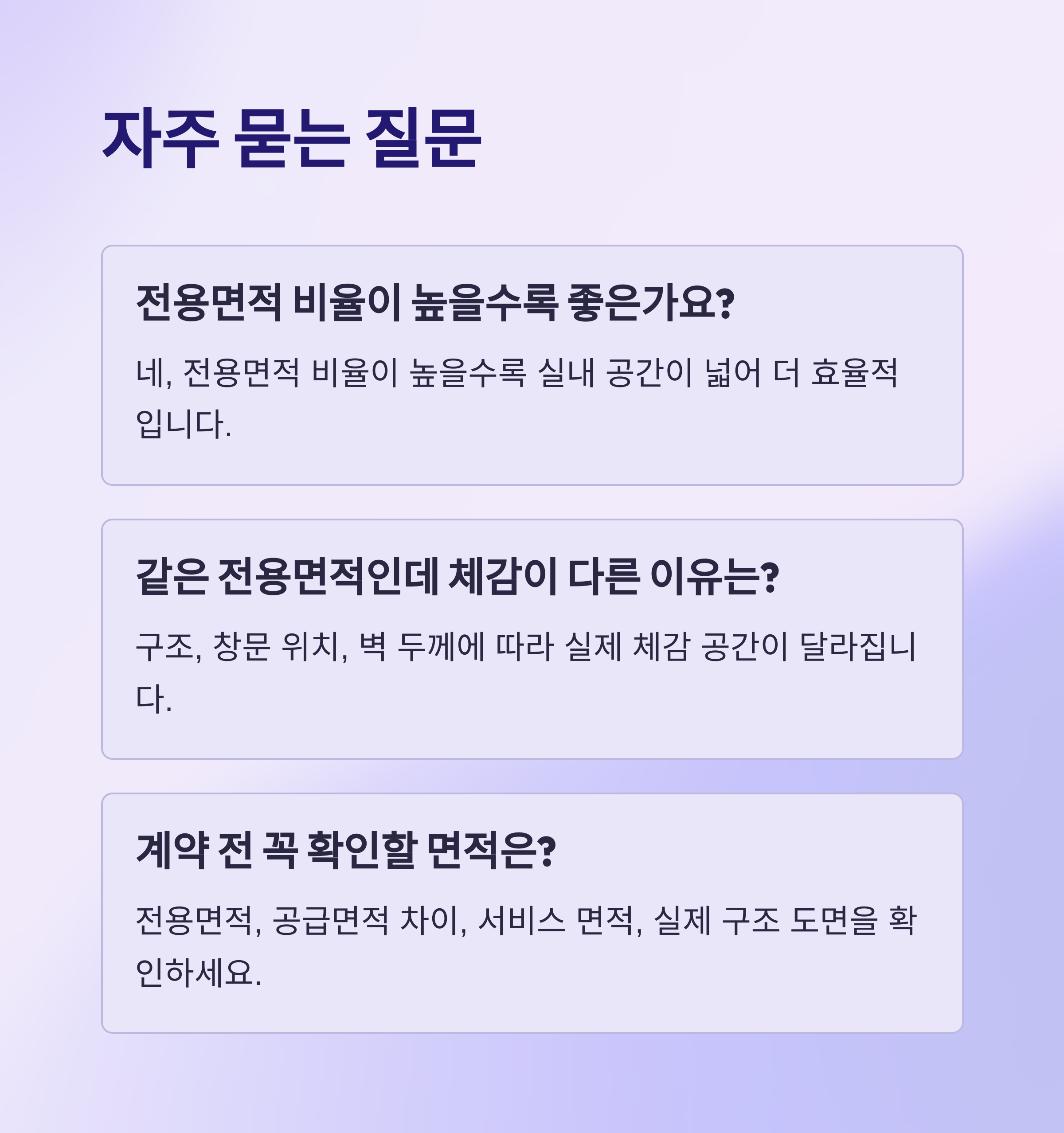 전용면적과 공급면적의 차이, 서비스 면적 여부, 실제 구조 도면을 반드시 확인하는 것이 중요합니다.