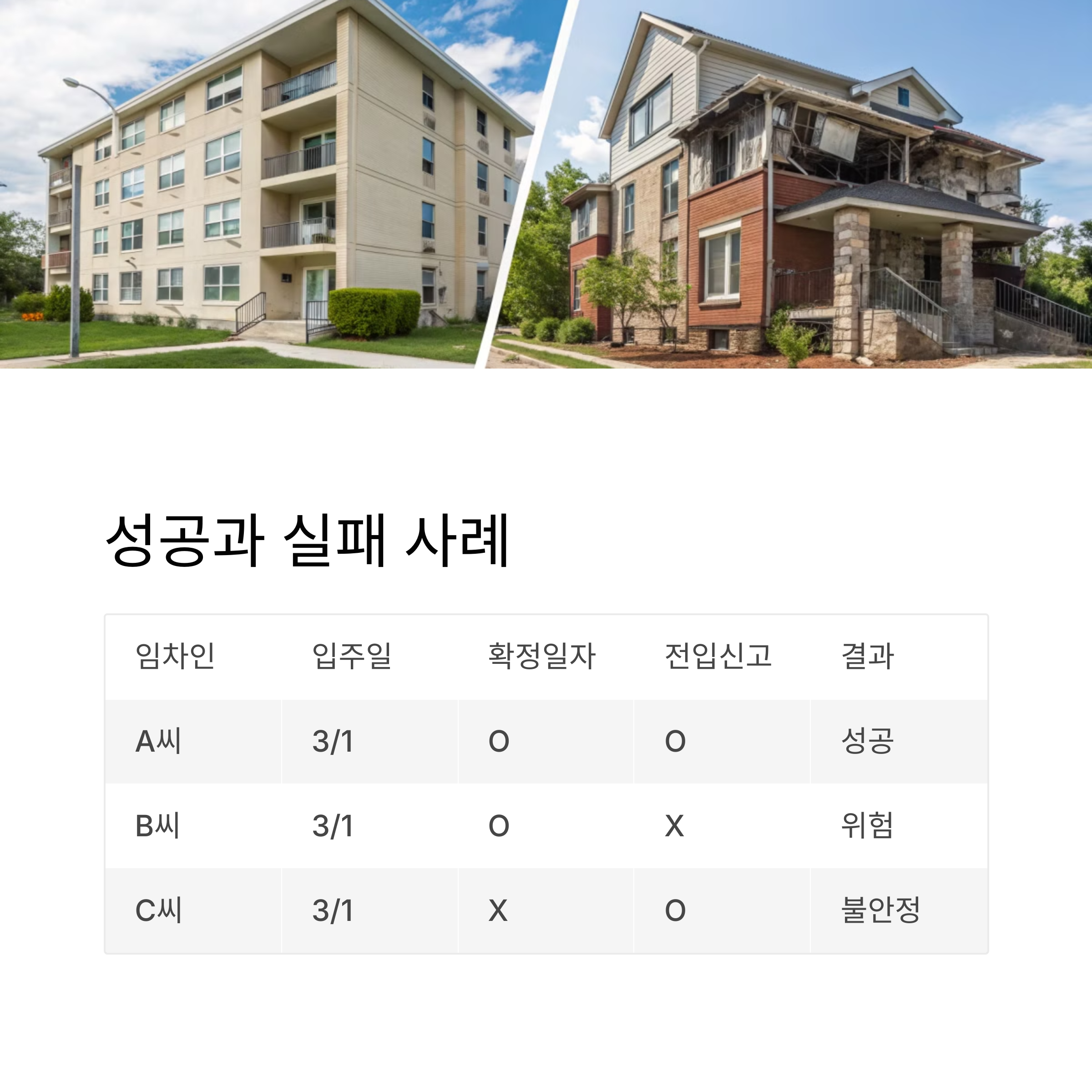 | A씨 (성공) | 3/1 입주 | O | O | ✅ 있음 | ✅ 있음 |