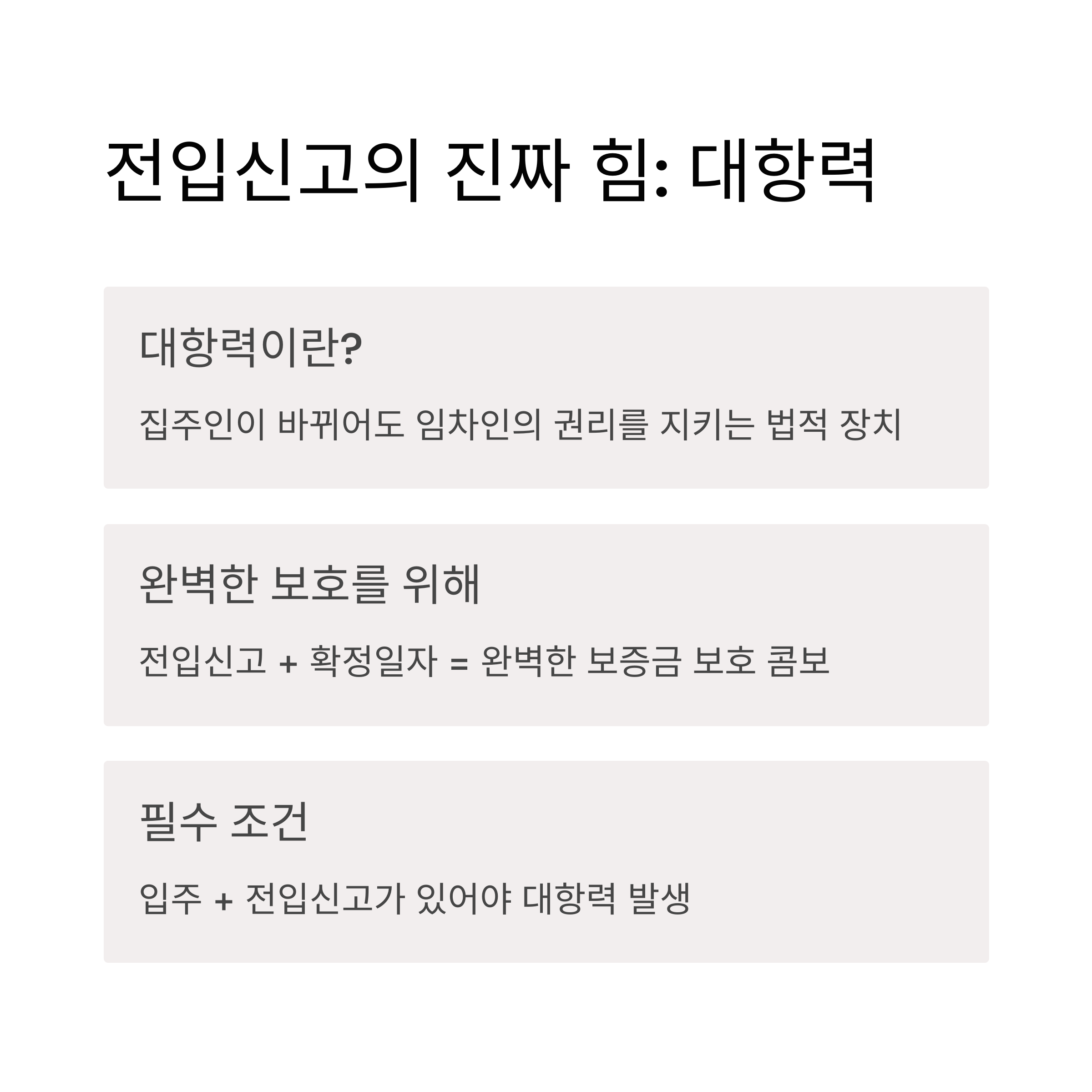 임차인 보호에서 가장 중요한 두 축은 바로 '입주'와 '전입신고'입니다. 아래 조건을 갖춰야만 대항력을 인정받을 수 있는데요, 특히 상가와 주택은 조건이 다르니 주의해야 해요.