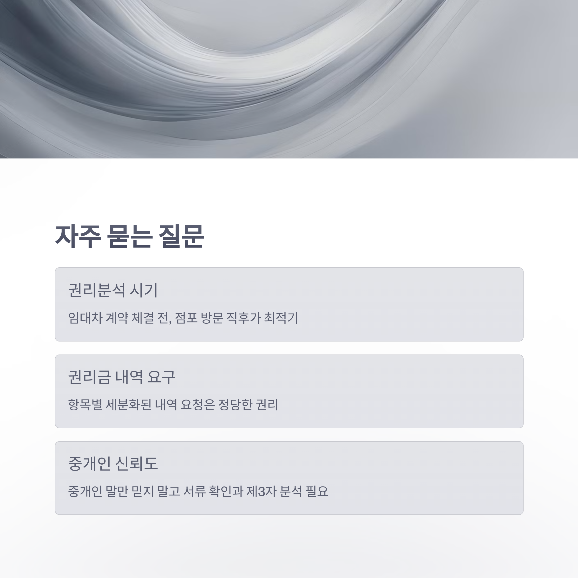 | 권리금 내역 요구 | 정당한 요구이며, 항목별로 살펴봐야 함 |