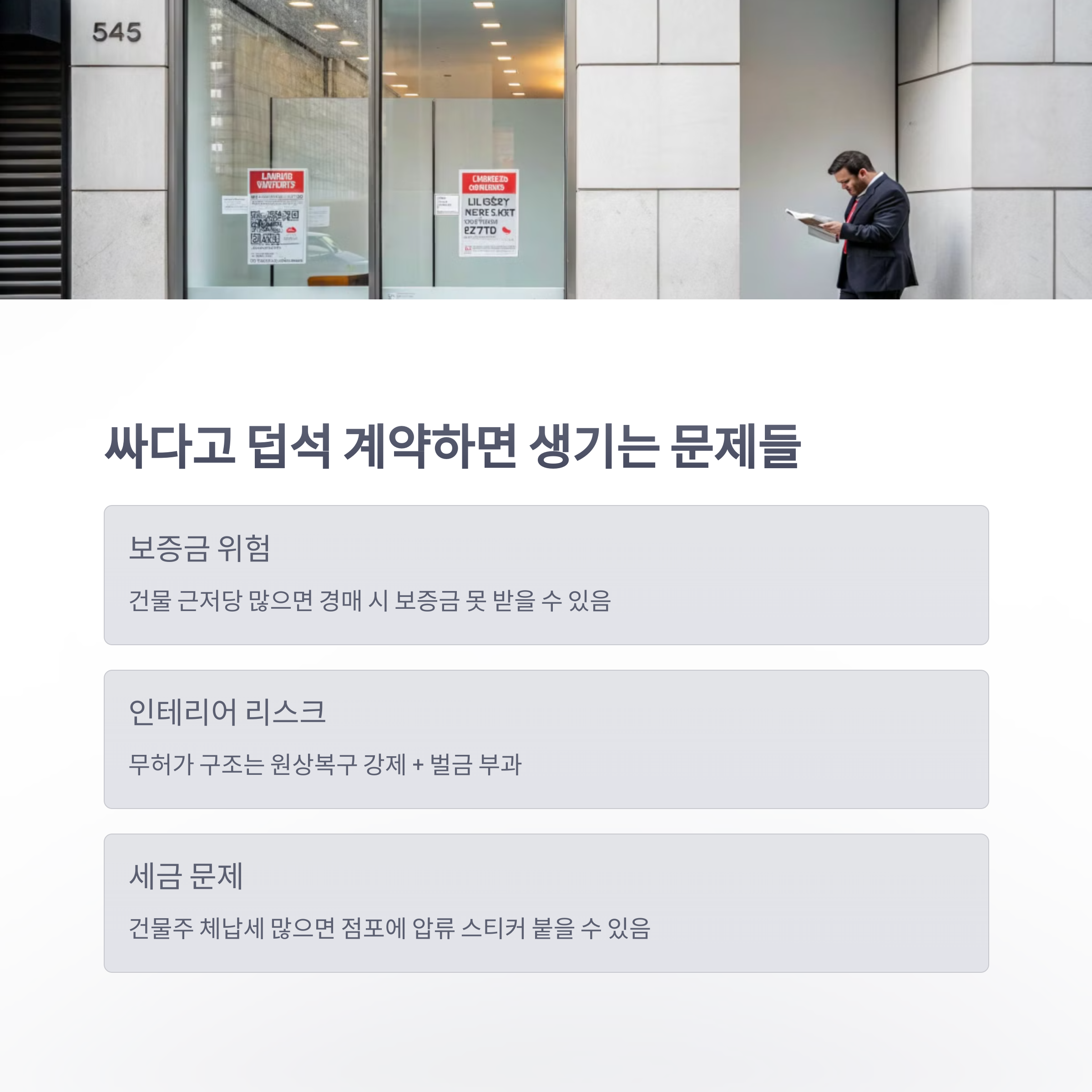 | 건물주의 체납세 많음 | 세무서에서 점포에 압류 스티커 붙이기도 함 |