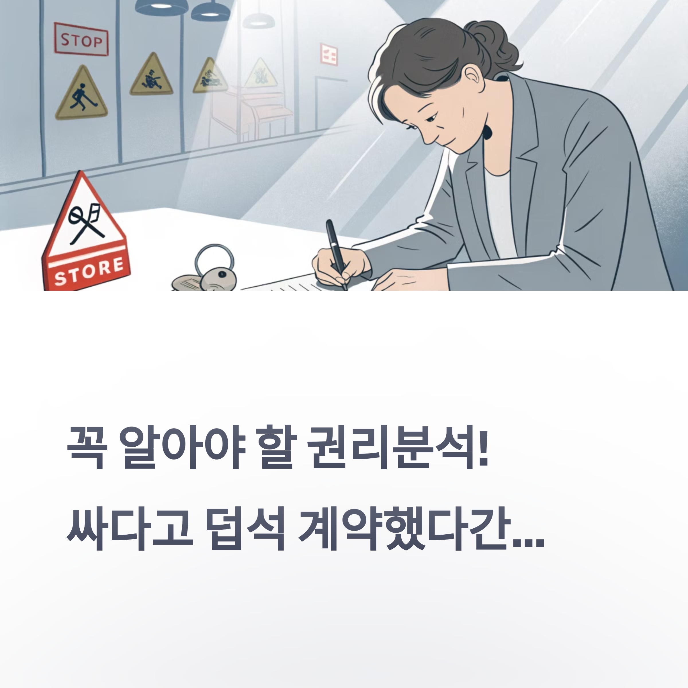 점포 계약은 단순히 '가게를 얻는 일'이 아니라, 앞으로 수천만 원에서 억 단위의 돈이 왔다 갔다 하는 중요한 선택입니다. 점포 권리분석은 바로 그 선택의 안전벨트예요. 싸다고, 예쁘다고, 인테리어가 마음에 든다고 성급하게 계약하지 마세요.
