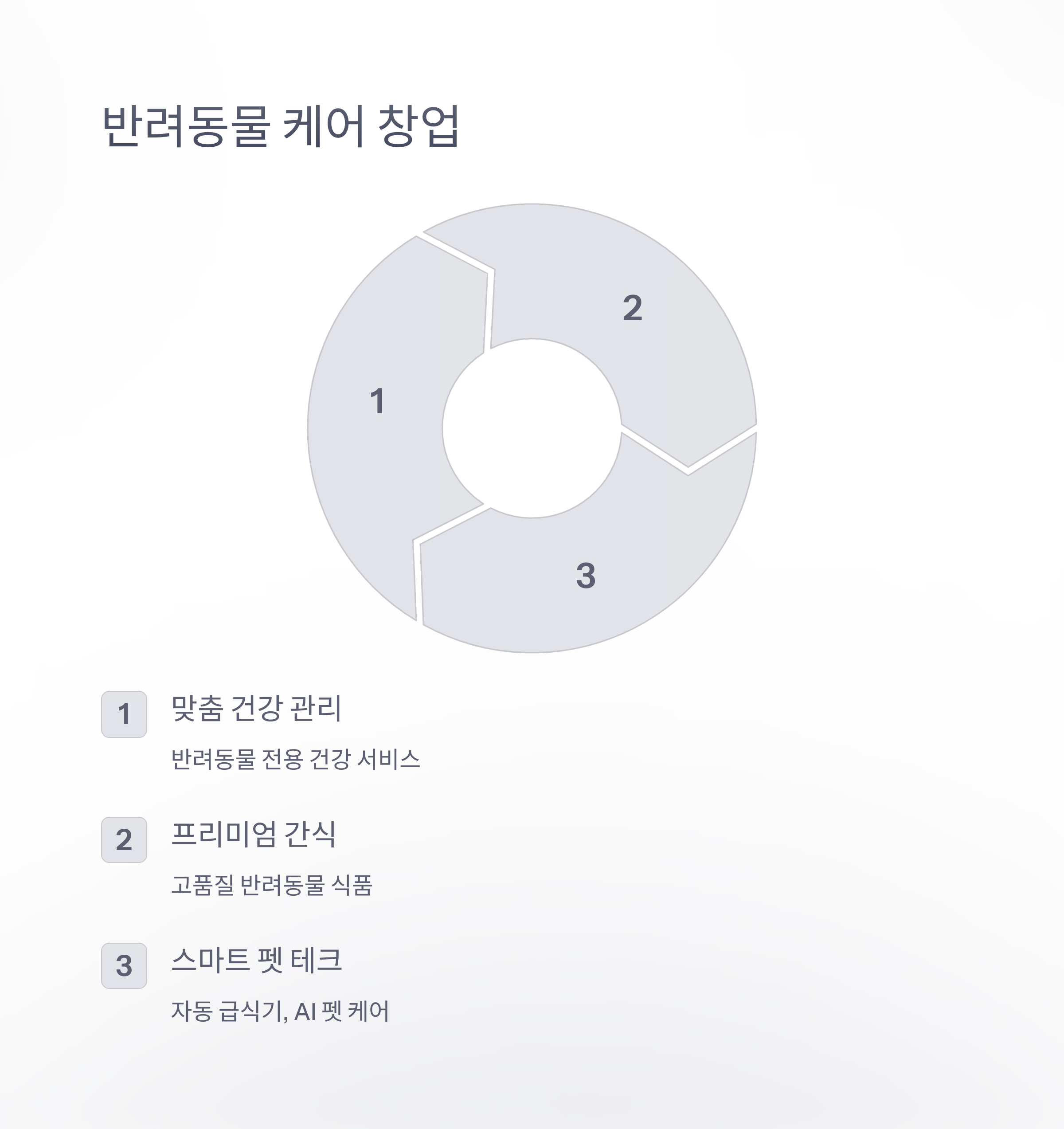반려동물 시장이 성장하면서 관련 창업 아이템도 인기를 얻고 있습니다. 특히 반려동물 건강 관리, 프리미엄 반려동물 간식, 스마트 펫 기술 등이 새로운 기회를 제공하고 있습니다. 사람들이 반려동물을 가족처럼 생각하는 만큼, 고품질의 서비스와 제품이 더욱 중요해지고 있습니다.