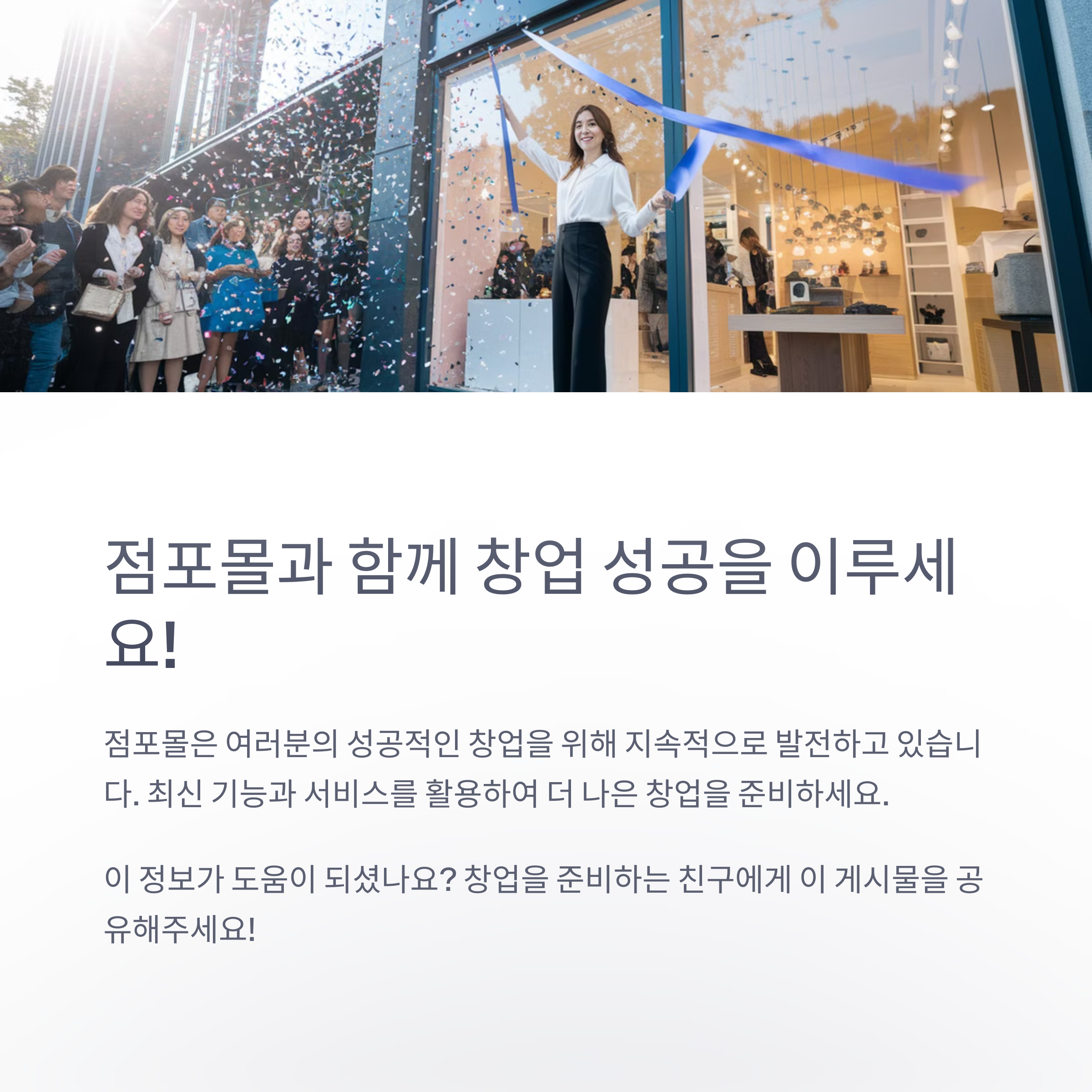 앞으로도 점포몰은 이용자 여러분의 피드백을 반영하여 더욱 편리하고 유익한 서비스를 제공하도록 노력하겠습니다. 여러분의 성공적인 창업을 응원합니다!