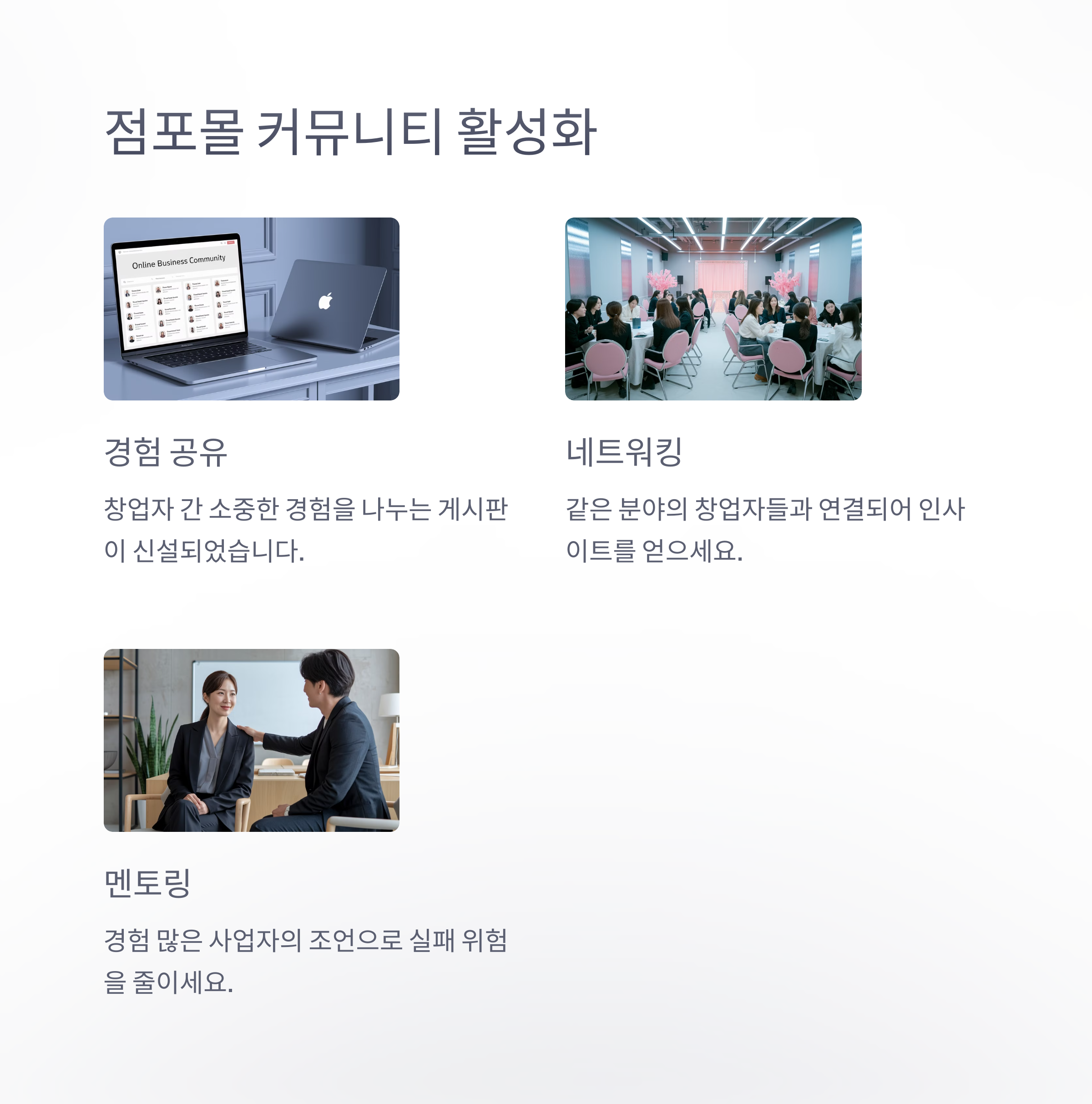 - 점포몰 커뮤니티 활성화: 창업자 간 경험을 공유할 수 있는 게시판 신설