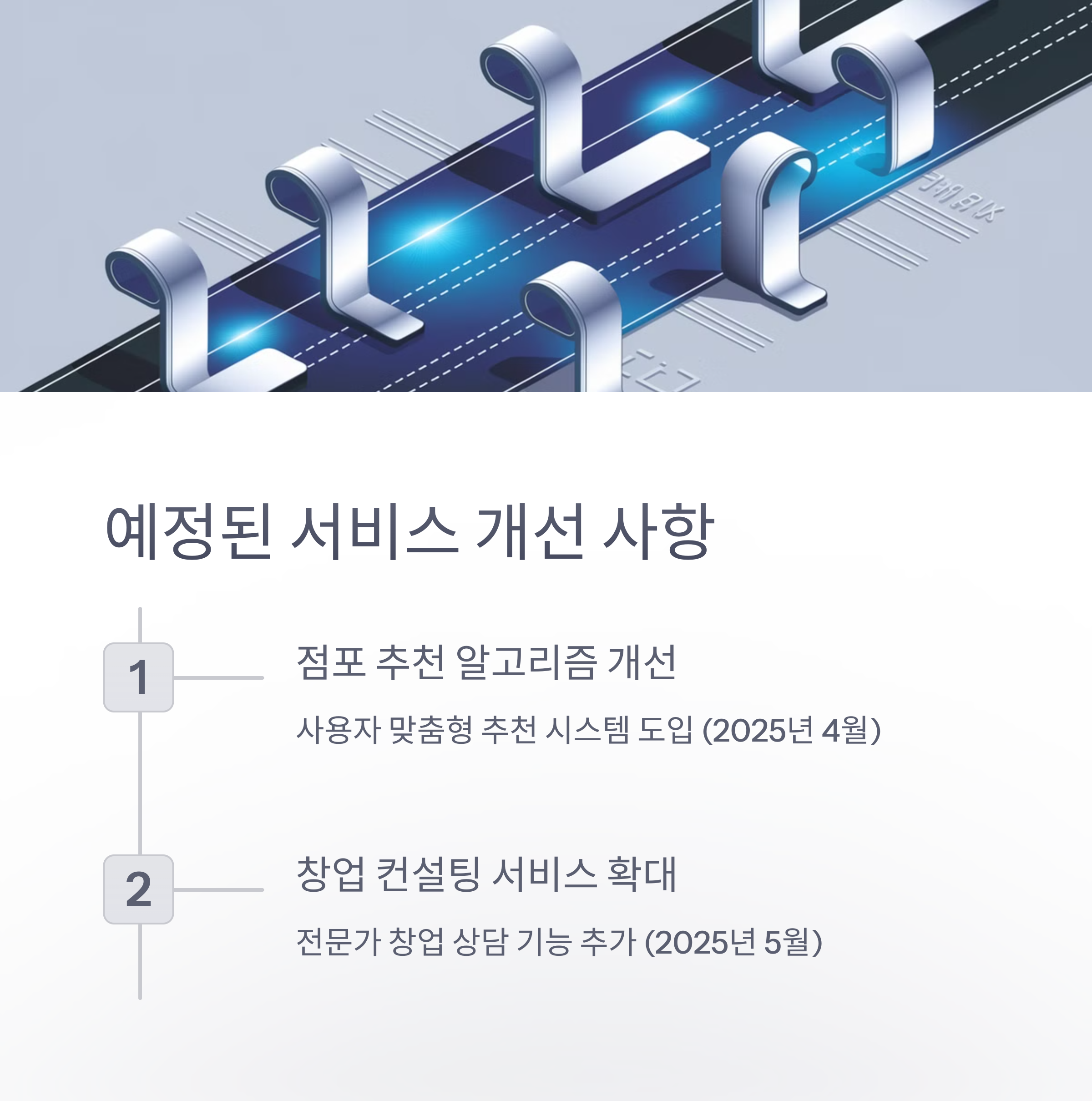 | 창업 컨설팅 서비스 확대 | 전문가 창업 상담 기능 추가 | 2025년 5월 |